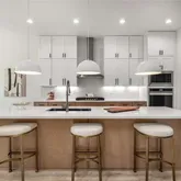 - Kitchen Features: Cabinets White, Kitchen Island, Pantry Walk-In, View to Family Room, Stone Counters