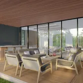Cumaru vaulted ceilings and overhangs.
