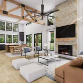 Enjoy the perfect blend of modern comfort and country charm in this beautifully designed 1,830 sq ft home, now available for presale on a pristine 1.6-acre lot. The home offers a sought-after master suite on the main floor for privacy and convenience, while the spacious living room and kitchen impress with soaring 16-foot ceilings and elegant exposed beams. Entertain or gather with family around...Presale Opportunity! Stunning 1,830 Sq Ft 3-Bedroom, 2-Bath Home with Master on Main on 1.6 Acres – $595,000