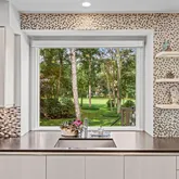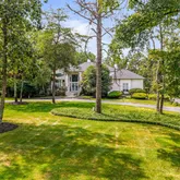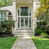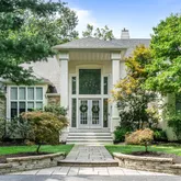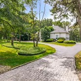 From the moment you arrive, you’re greeted by a horseshoe driveway with custom pavers, a meticulously manicured lawn, and lush landscaping. A custom paver walkway leads to stately French doors, setting the tone for the sophistication that awaits inside.