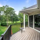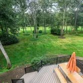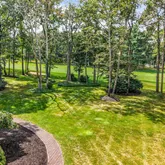 The main level also features a spacious sunken family room with recessed lighting and a gas fireplace framed by a porcelain accent wall; a sunny breakfast area with sliding glass doors to the brand-new Trex deck and views of the golf course; a dining room large enough to seat eight or more; a sunken formal living room; a powder room; laundry room; and a versatile bonus room ideal for a home office. Expansive windows throughout frame views of mature trees and emerald-green lawn.