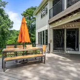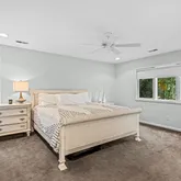 Upstairs, all four bedrooms provide comfort and privacy. The primary suite boasts a tray ceiling, two walk-in closets with custom built-in shelving, and a private Trex balcony overlooking the 1st hole of the Blue Course at Little Mill Country Club. The spa-like ensuite includes updated his-and-her vanities, a walk-in double shower, a freestanding soaking tub, and porcelain tile flooring that adds a clean, elegant finish to the space. The second bedroom offers its own ensuite with an updated standing shower, while the remaining two bedrooms share a Jack-and-Jill bath with updated floating vanities and a shared shower.