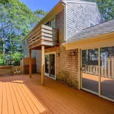 This spacious contemporary cape is sure to impress. Nestled in a neighborhood setting, just minutes to dining, shopping, and the Cape's best beaches is where you will find this beautiful property. Inside, this home features three bedrooms, including a first-floor bedroom with an adjacent bathroom and laundry for added convenience. The main living area boasts soaring ceilings and a gorgeous fireplace, creating a bright and inviting space that seamlessly connects the living room, dining area, and kitchen....This spacious contemporary cape is sure to impress. Nestled in a neighborhood setting, just minutes to dining, shopping, and the Cape's best beaches is where you will find this beautiful property. Inside, this home features three bedrooms, including a first-floor bedroom with an adjacent bathroom and laundry for added convenience. The main living area boasts soaring ceilings and a gorgeous fireplace, creating a bright and inviting space that seamlessly connects the living room, dining area, and kitchen. This setup is perfect for both everyday living and entertaining guests. Additional features include an attached garage, central air conditioning, Town Water and Town Sewer. The property is freshly painted throughout with new carpet, creating a fresh and welcoming ambiance. Step outside to find a large deck overlooking a level yard, providing the perfect spot for outdoor relaxation and gatherings. A great year-round residence or a vacation home.