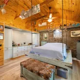 - Interior Features: Built-in Features, Ceiling Fan(s), Eating Space In Kitchen, High Ceilings, Open Floorplan, Primary Bedroom Main Floor, Solid Wood Cabinets, Stone Counters, Vaulted Ceiling(s)