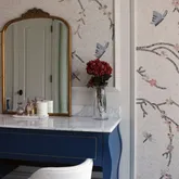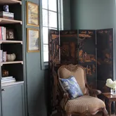 The Chinoiserie Room: Queen bed, walk-in closet, and a serene ensuite bath with an impressive 6-foot steam shower.