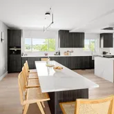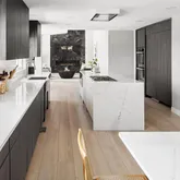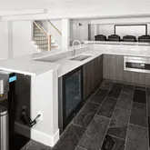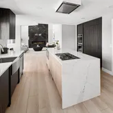 No detail has been overlooked in the thoughtful renovations, starting with the relocation of the laundry room upstairs for effortless convenience near the primary suite. A newly expanded second foyer off the garage offers a grand, welcoming space for everyday ease. The heart of the home—an extraordinary kitchen—is a true showpiece, featuring waterfall edge countertops, premium Miele appliances, and an oversized walk-in pantry complete with a freezer and water cooler.