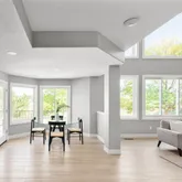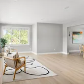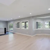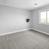 - Room Description: This inviting family room offers a bright, open feel with COREtec Plus wide plank flooring and crisp white baseboards that create a clean, modern backdrop. Two sets of triple-wide windows with blinds allow for natural light to pour in, while recessed canned lighting ensures a warm, welcoming glow day or night. The space flows effortlessly—ideal for relaxing or entertaining.