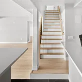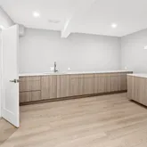 - Room Description: The mudroom, located just off the garage entrance, blends function and style with COREtec Plus wide plank flooring and sleek canned lighting. White built-in cabinets, closet-style hangers, and smart storage nooks keep everything organized, while a wide curved bench offers a perfect place to sit and settle in. A thin plank wood accent wall adds warmth and a touch of character to this thoughtfully designed drop zone.