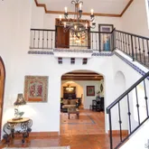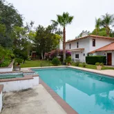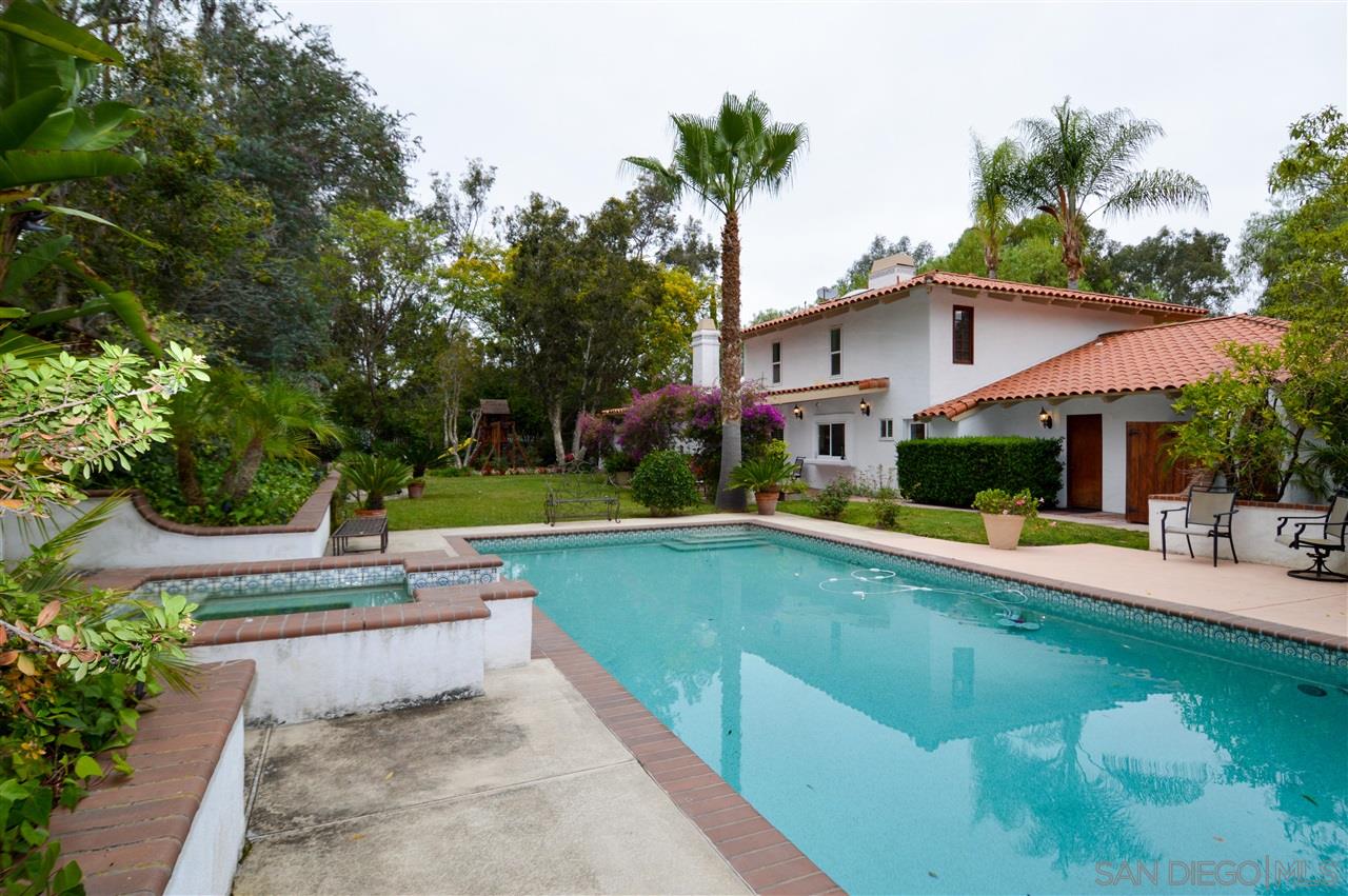 - Supplement: Pass through the Jasmine covered archway entry past the bubbling fountain, palms, ferns and more! As you enter this home through the impressive Spanish period arched door you are welcomed by a 30 foot high foyer appointed with Spanish pavers, mosaic tile, stained glass, wrought iron rails and alcove doorways. Keep your eye out for the stylish alcoves/niches, exposed wood beamed ceilings, skylights, and wood accents throughout. Downstairs you'll find the perfect living room for entertaining featuring a gorgeous fireplace. Attached is the dining room with coved ceiling and French doors to the garden. The open kitchen features a Viking Stove, Sub-Zero built in Fridge, Maytag dishwater and Forest Green Granite countertops. The kitchen is open to the sunken family room with yet another fireplace and offers a slider out to the backyard patio area. Down from the kitchen you'll find the laundry room and the large three-car garage with plenty of storage space. On the other side of the home you'll find the guest bath off the hallway and three bedrooms. Bedrooms one and two have a common bathroom. Bedroom one looks out onto the front lawn and gardens while Bedroom two overlooks the dog kennels and side gardens. Both have built in desks and book shelves. Bedroom three is huge with two sets of sliders to the back and side yards and built in customized office center. The size of this third bedroom along with the full bath could make it the perfect mother-in-law/nanny suite with its own outside entrance. Hmmm just missing a kitchenette to be self-contained? The master bedroom is perched on the top of the home and is accessed through an elegant curved staircase. The large private master suite offers a huge walk-in closet, spacious master bath with a raised spa tub and two separate vanities/sinks. Want two outdoor retreats off the master bedroom? Yes enjoy your peaceful mornings on the large tiled private patio overlooking the backyard or watch the family play from the expansive old world patio overlooking the front yard. This incredible estate offers an amazing yard with too many positives to list. Some highlights are the fenced dog kennel, multiple gardening areas, the football field sized field front lawn, the lush rolling hills and elevation changes, the 22 palm trees, the seasonal stream with old-style bridge and the huge fenced storage area for your outdoor toys, tools, gardening machines, etc. There are two AC units for upstairs and one for down. The pool and spa is perfect for entertaining along with the outdoor fireplace and the jungle gym for the kids. This truly unique property is a self-contained compound to host family reunions, the neighborhood kids, large parties or you could just enjoy the peace and quiet. Seller believes that 2 horses would be allowed on property.