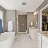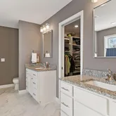 - Bath Desc: Double Sink,Bathroom Ensuite,Full Primary,His and Her Closets ,Private Primary,Main Floor 1/2 Bath,Separate Tub & Shower,Upper Level Full Bath