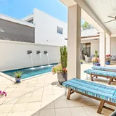 On the first floor at the east of the home a large owners suite primary bedroom. The expansive area has 2 walk in closets, owners closet, expanded shower with 2 heads, desk area and door to pool. Wake up like living in a resort looking over the pool and courtyard. The first floor also features a full bathroom, guest bedroom and laundry area with outdoor shower as idea location for pool side living. The upstairs has an impressive large screened in porch overlooking pool sanctuary. The upstairs has 2 large bedrooms with king sized beds as well as built in twin bunks. This home easily sleeps 12 and is less than .4 mile to the beach. This coastal retreat was built with privacy in mind. Barcelona is a low density street with a 15 foot buffer on west side of the road for neighboring Grove by the Sea. The avenue is lined with high end second homes, vacation homes and full time residents. This hidden gem is located in Gulf Shore Manor which boasts multiple deeded beach use and accesses points and an easy bike ride to town of Seaside or Watercolor. The community of Gulf Shore Manor has over 1400 feet of deeded beach use just at the end of the street.