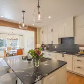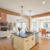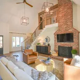 this home now features an open floor plan, beautiful white oak cased openings, Large kitchen island with soapstone countertops, butler's pantry, and stunning white oak floors with custom inlay at entry. The primary and a guest bedroom are on the main level with additional...Don't miss the amazing transformation of this stunning golf front, brick residence in the gated community of Pinewild Country Club. A large deck provides views of the second hole on the Azalea Course. Completely remodeled and permitted,