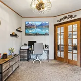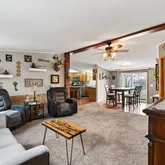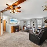 - Interior Features: Ceiling Fans, Separate Formal Living Room, Home Office, Kitchen Island, Living Dining Room, Other, See Remarks, Sliding Glass Doors, Solid Surface Counters, Bedroom On Main Level, Main Level Primary, Workshop