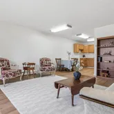 Recent updates include fresh interior paint, new vinyl flooring throughout, an updated bathroom, new light fixtures, and upgraded outlets and light switches. Both bedrooms offer generous space, abundant natural light, and ample closet storage. A wall-mounted A/C unit in the living room provides seasonal comfort. The home includes a detached one-car garage with cabinetry and an additional private storage closet. The building offers elevator access and a conveniently located laundry room. Community amenities include a clubhouse, fitness facilities, indoor and outdoor pools, golf course, garden areas, on-site restaurant, walking paths, and access to Windsor Lake. Pets are permitted per association guidelines. Ideally located near shopping, dining, medical providers, and the High Line Canal, with bus stops throughout the community and easy access to Lowry and I-225.
