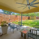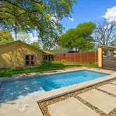 Step outside, and the backyard reveals yet another dimension: a covered patio designed for year-round enjoyment, a generous yard framed by fencing, and a shimmering pool—an oasis of cool relief beneath the Texas sky. Nearby, a detached structure hints at possibility—studio, workshop, retreat. The environment here is not just outdoor space; it’s an extension of the home’s livability.