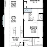 Open-concept living space with sloped ceilings