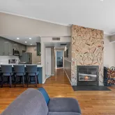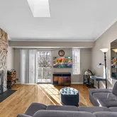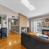- Internet Remarks: Ideally situated in the sought-after Forest Hills community, this upgraded top-floor 2-bedroom, 1-bath residence offers 998 square feet of stylish, light-filled living. The home features beautiful wood flooring, vaulted ceilings, crown molding, a neutral designer palette, and an open, airy layout flooded with natural light. The spacious living room is anchored by a charming wood-burning stone fireplace, creating a warm and inviting atmosphere. The thoughtfully renovated open-concept kitchen showcases stainless steel appliances, quartz countertops, abundant gray cabinetry, recessed lighting, and a dedicated dining area—perfect for everyday living and entertaining. Both bedrooms are generously sized, with the primary bedroom offering a deep, well-appointed closet. The fully renovated bathroom elevates daily routines with modern finishes and dual sinks. Additional highlights include a private balcony, oversized skylight, deeded parking space, central air conditioning, forced heat, ample storage, and a prime central location close to shopping, dining, entertainment, and schools. This move-in-ready home truly has it all.