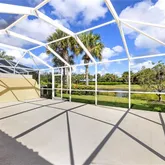 space and front-to-back layout looking out to quiet landscape and water. Huge screened lanai. Lots of fans and fixtures have been replaced, too. You have two large walk-in showers. There are