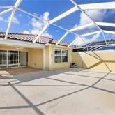 space and front-to-back layout looking out to quiet landscape and water. Huge screened lanai. Lots...Villa Home with water view in beautiful gated Verona Walk. This two bedroon/2 bath plus den property has an open floor and a two-car garage with lots of storage attached to the laundry room. The white shaker cabinets in the kitchen and the new large open bar area are stunning. Granite countertops in kitchen with new refrigerator and microwave with new range on the way. You will love the extra open den