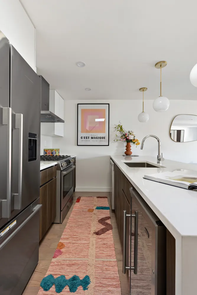 The upper apartment has three full bedrooms, two and a half baths, a beautifully appointed kitchen (similar to the garden apartment) and a flexible fun room with sloped ceiling in the main level adjacent to the kitchen and play area for kids, movie night getaways or a sweet meditation sanctuary to melt the week away. Up the stairs on the same level is a fully built out roof deck with sunshine all day and fantastic open views in all directions.
