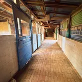 -96 ft x 22 ft indoor stall barn with 6 stalls, plus additional stall areas, enclosed pen and covered wash bay