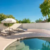 This beautifully maintained single level ranch home features charming curb appeal with a welcoming front courtyard and fresh landscaping. Inside, you'll find a spacious 3 bed 2 bath floor-plan and wood plank ceilings in the kitchen. The 3-car garage plus RV gate is ideal for extra vehicles or toys. The private backyard is perfect for relaxing or entertaining, complete with a covered patio and sparkling Pebble-Tec pool.