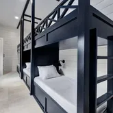 - Guest Bedroom 1: Three Twin over-Twin Bunk Beds (sleeps 6) Shared Hallway Bathroom with Single Vanity & Shower/Tub Combo