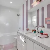 - Room Bathroom Features: Vanity area, Remodeled, Shower in Tub, Tile Counters
