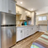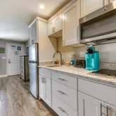 Conveys fully furnished, including a sofa bed with a memory-foam mattress for extra sleeping space and a Smart TV for easy streaming. Pergo Outlast flooring flows through the main space; the bath features easy-care ceramic tile