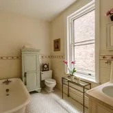 On the bright and airy third floor, find three additional bedrooms (one with a view of the city skyline), a laundry room, roomy hall closets, and a marble-tiled bath with clawfoot tub.