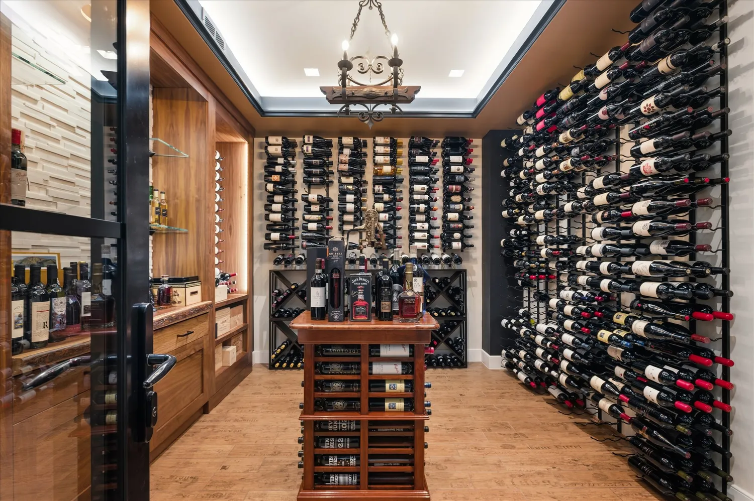 The lower level offers an expansive, impeccably-designed space dedicated to entertaining. Anchored by a full bar & an impressive 1,300-bottle climate controlled wine cellar, it’s ideally suited for hosting — from casual gatherings to more curated evenings with friends & guests.