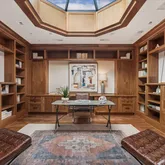 Currently styled as a striking home office, the library is a standout space defined by a dramatic domed skylight that fills the room with natural light. The built-ins add presence and structure, creating a setting that feels intentional and commanding — well suited for focused work or high-level meetings. Its size and layout also offer flexibility, with the potential to convert back into a fourth bedroom if desired.