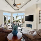 - Interior Features: Ceiling Fan(s), Eating Space In Kitchen, Elevator, High Ceilings, Kitchen/Family Room Combo, Living Room/Dining Room Combo, Open Floorplan, PrimaryBedroom Upstairs, Smart Home, Split Bedroom, Stone Counters, Thermostat, Tray Ceiling(s), Walk-In Closet(s), Window Treatments