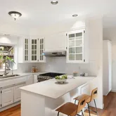 - Kitchen: Cooktop - Gas, Countertop - Quartz, Dishwasher, Exhaust Fan, Hood Over Range, Oven Range - Gas, Refrigerator