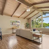 opens onto a private lanai to a lush green yard, cooled by the trees canopy. Private apt. for your friends or family or rental income to help pay the mortgage. Engineered plans to add an ensuite on the north side of the home. Located in the popular Sunset area at a comfortable elevation with cool breezes. Near beaches, Kona town with shopping, restaurants, banks, post office, schools. Alii Dr. stroll, open markets and more. Approximately 15 minutes to Kona Community Hospital. Buyer to cooperate with the Seller's 1031 Exchange at not cost to the Buyer. Buyer to examine all pertinent information.
