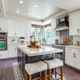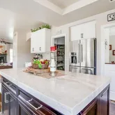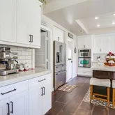 - Room Kitchen Features: Kitchen Open to Family Room, Kitchen Island, Quartz Counters, Remodeled Kitchen, Self-closing cabinet doors, Self-closing drawers, Stone Counters, Walk-In Pantry, Built-in Trash/Recycling