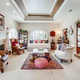 - Interior Features: Balcony, Bar, Cathedral Ceiling(s), Ceiling Fan(s), Coffered Ceiling(s), Copper Plumbing Partial, Crown Molding, Granite Counters, High Ceilings, Pantry, Pull Down Stairs to Attic, Recessed Lighting, Stone Counters, Storage, Sunken Living Room, Unfurnished, Vacuum Central, Wet Bar