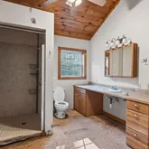 Vaulted tongue-and-groove ceilings adding rustic, cabin-style warmth