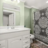 - Interior: Bookcases, Double Vanity, High Ceilings, Master On Main Level, Pulldown Attic Stairs, Rear Stairs, Soaking Tub, Tile Bath, Vaulted Ceiling(s), Walk-In Closet(s), Whirlpool Bath