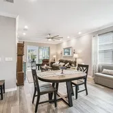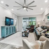 This thoughtfully designed residence features 2 spacious bedrooms, 2 full bathrooms, and a 2-car garage, blending elegant design with effortless Florida living. Inside, you’ll find luxury vinyl plank flooring throughout, crown molding, and a bright, open-concept layout that flows naturally from the great room to the kitchen and dining area.