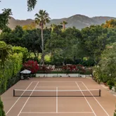- Exterior Features: BBQ, Fenced All, Fruit Trees, Lawn, Patio Open, Pool, Sauna, Spa - Outside, Tennis Court, Pool3, Tennis Court(s)