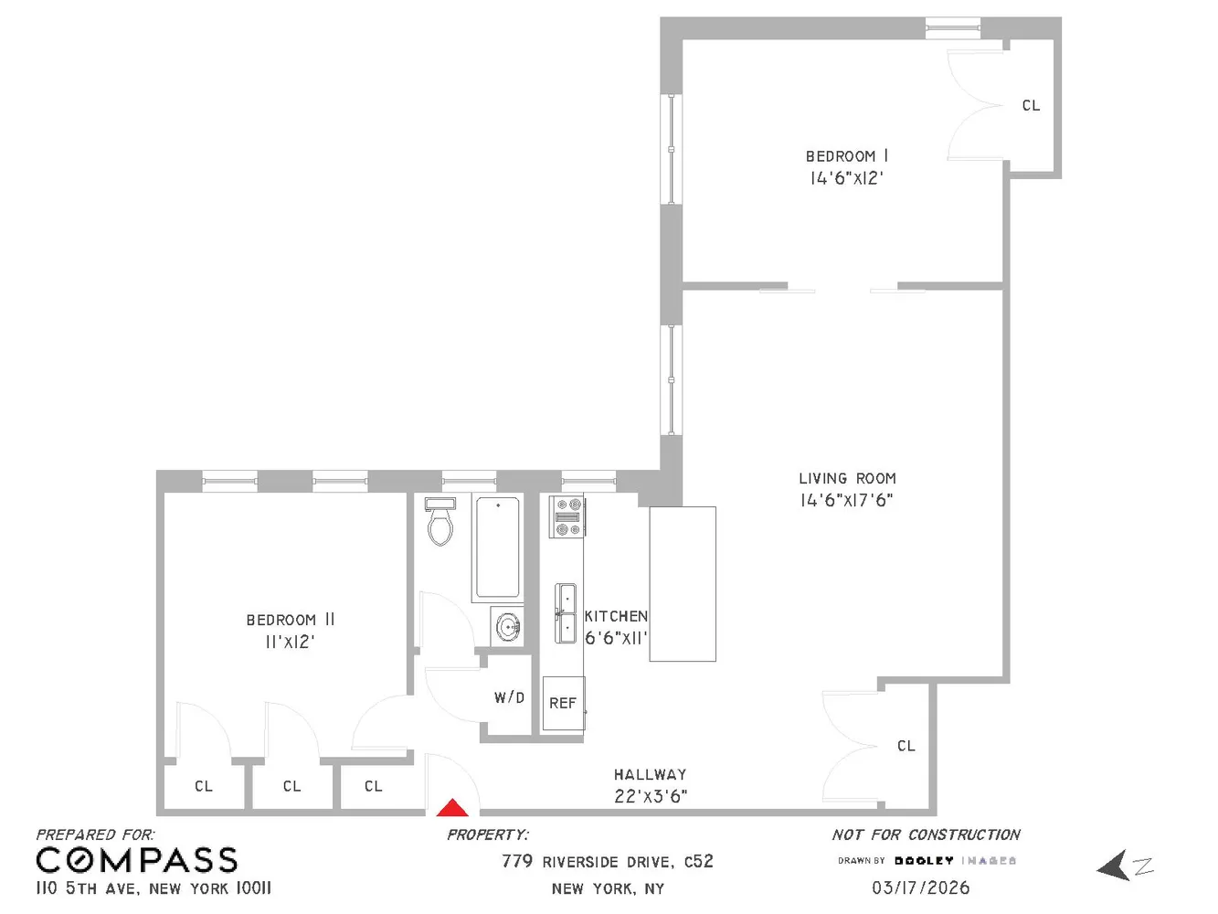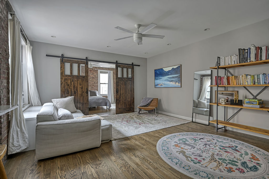 The floor plan has an open kitchen with sleek appliances, a large window and generous counter space for prepping and dining. The winged bedrooms are conducive to privacy. Custom barn doors, exposed brick, and stunning...A centennial celebration! Presenting unit C52 at 779 Riverside Drive, a thoughtfully renovated pre war condo with all the modern details of current day. Built in 1926 and transformed in 2018, this unit maintains the charm we love of the 1920s buildings and levels up to 2026 conveniences.