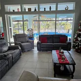 (3) Power Stormsmart Fabric Roll-Down Hurricane Shutters protecting the entire Lanai Area (prevents up to 150+ mph winds) including roll-down Hurricane Shutters for the Front Windows of the Home and the Double Glass Front Door Aluminum Easy-Shut Accordian Hurricane Shutters for all of the House Side Windows including the Pool Guestroom Bathroom Door in the Lanai Area.