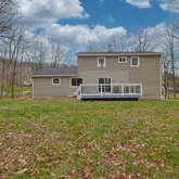 - Exterior Property Features: Rain Gutters, Deck, Porch, Attached, Driveway, Garage, Garage Door Opener, Back Yard, Level, Part Wooded