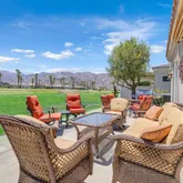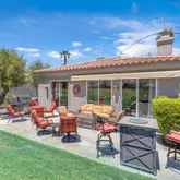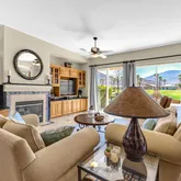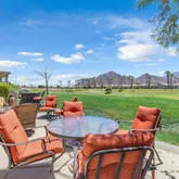Located on the 4th Green of the Pete Dye Dunes Course, the home boasts breathtaking, unobstructed southwest views of the Santa Rosa Mountains—a stunning backdrop for enjoying sunsets, mountain silhouettes, and golfers passing by. Whether you're sipping morning coffee or hosting guests on the expansive patio, the automated awning and fire table add both comfort and charm year-round.