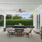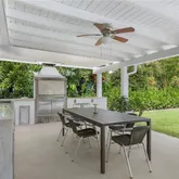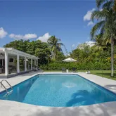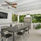 Designed for entertaining, the expansive outdoor kitchen is equipped with dual natural gas and brass barbecues. The resort-style, heated Olympic-size swimming pool boasts a diamond-bright finish and is surrounded by lush mango and avocado trees, creating a private tropical oasis. Additional highlights include a newly built gym and generous outdoor spaces ideal for gatherings or family enjoyment.