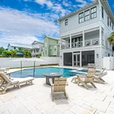 An elevator...Step into a stunning 2023 newly constructed, never rented home directly on 30A, designed for luxurious coastal living and effortless entertaining. Nestled on a spacious corner lot, this thoughtfully designed three-story retreat boasts one of the largest private pools on 30A, a rooftop terrace with panoramic Gulf and Camp Creek Lake views, and nearly 1,840 sq ft of outdoor porches and living space. Whether you're relaxing or hosting, every detail of this home is elevated and intentional.