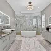 - Interior Features: Closet Cabinets, Custom Mirror, French Door, Kitchen Island, Roman Tub, Walk-in Closet