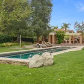 Stunning Estate Home on a quiet cul-de-sac in the gated golf course community of Rancho Santa Fe Farms! The impeccably remodeled interior boasts European White Oak floors, coffered ceilings, walls of windows and numerous French doors for indoor-outdoor living. The gorgeous new kitchen features custom Walnut cabinetry, honed Carrara marble and Basaltina countertops and top-of-the-line S/S appliances by Wolf, Bosch, Miele and SubZero. The adjacent family room/theater has remote-control black-out shades,...Stunning Estate Home on a quiet cul-de-sac in the gated golf course community of Rancho Santa Fe Farms! The impeccably remodeled interior boasts European White Oak floors, coffered ceilings, walls of windows and numerous French doors for indoor-outdoor living. The gorgeous new kitchen features custom Walnut cabinetry, honed Carrara marble and Basaltina countertops and top-of-the-line S/S appliances by Wolf, Bosch, Miele and SubZero. The adjacent family room/theater has remote-control black-out shades, built-in projector, surround-sound speakers and a large screen that retracts into the ceiling when not in use. Five secondary bedroom suites are located on entry level, with one used as an office. The luxurious primary suite occupies the entire second level and includes an adjacent gym/office/sitting room. Outside, you’ll love the expansive grassy lawn shaded by mature trees, 70’ lap pool and a charming pergola-covered outdoor dining area with fireplace.