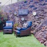- Exterior Features: Fenced Yard, Storage Shed, Professional Landscaping, Decorative Lighting, Garden Area, Stone Wall, Patio